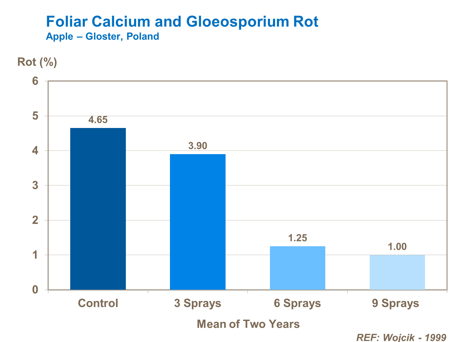 Les pourritures de stockage, y compris la pourriture gloéosporienne et le pénicillium, peuvent être minimisées par l’utilisation de calcium. Les applications foliaires répétées sont les plus efficaces pour alléger ce type de dommage.